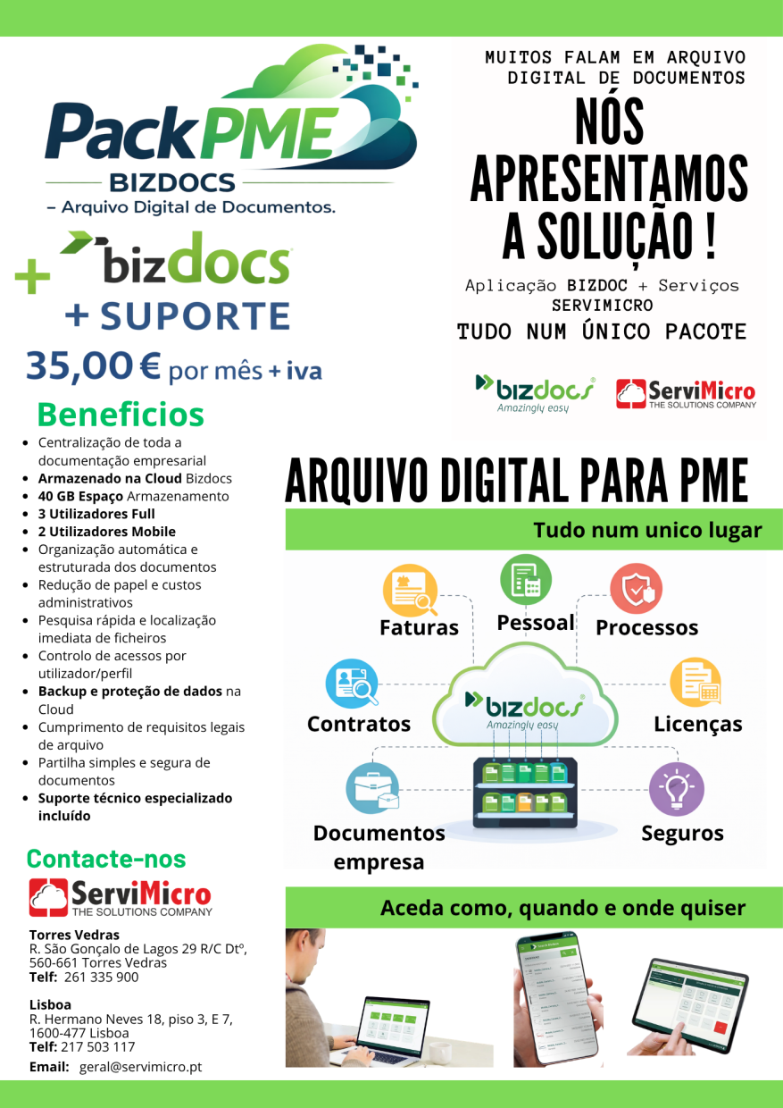 Diga adeus ao papel. Com o BizDocs, digitalize, organize e aceda à informação da sua empresa de forma rápida, simples e segura — poupando tempo e dinheiro.